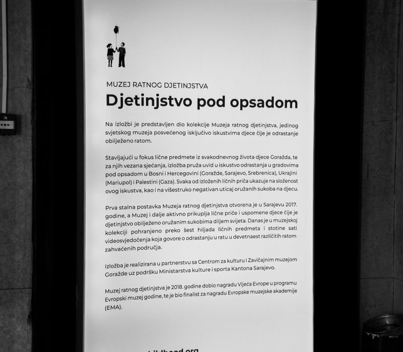 Muzej je otvoren 2016. godine. Prva postavka pod nazivom „Ratna izložba“ otvorena je 18. septembra 2016. godine. Postavka govori o Goraždu i njegovim stanovnicima u periodu od 1992. do 1995. godine. Kroz lične predmete Goraždana i Goraždanki predstavljena je priča o opstanku i borbi za život – to je prije svega priča o kreativnosti, inovativnosti i nepokolebljivom duhu stanovništva grada pod opsadom.